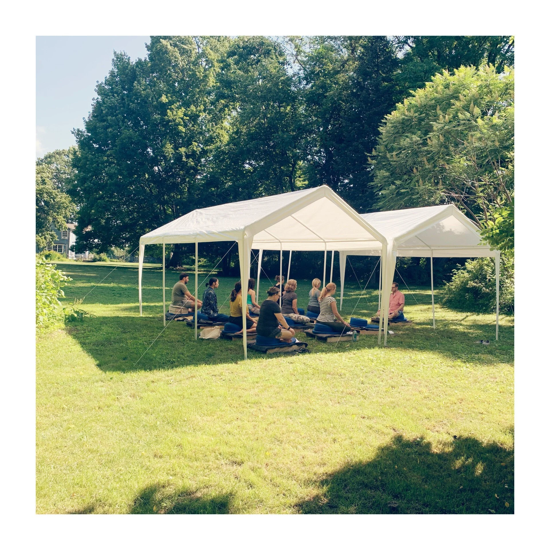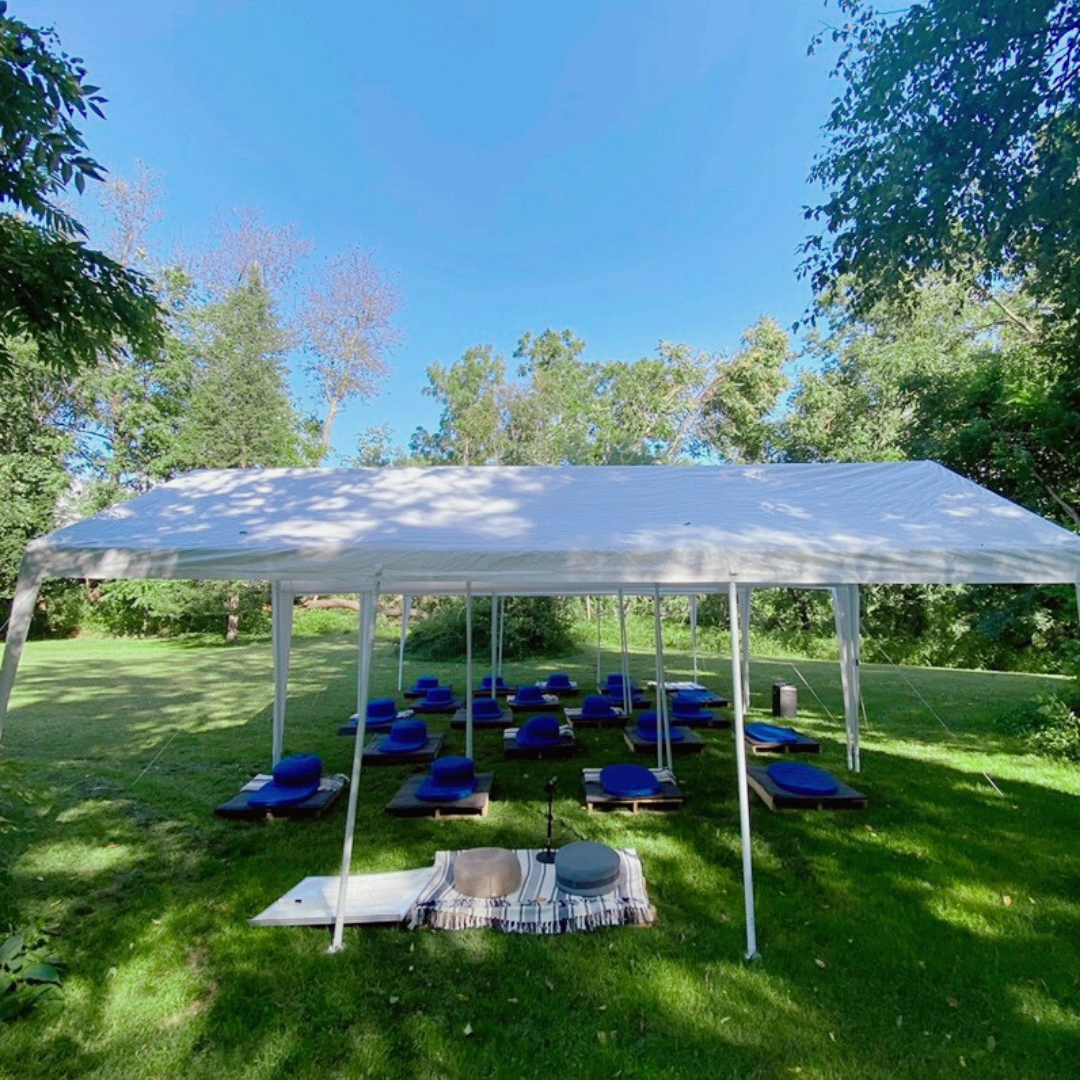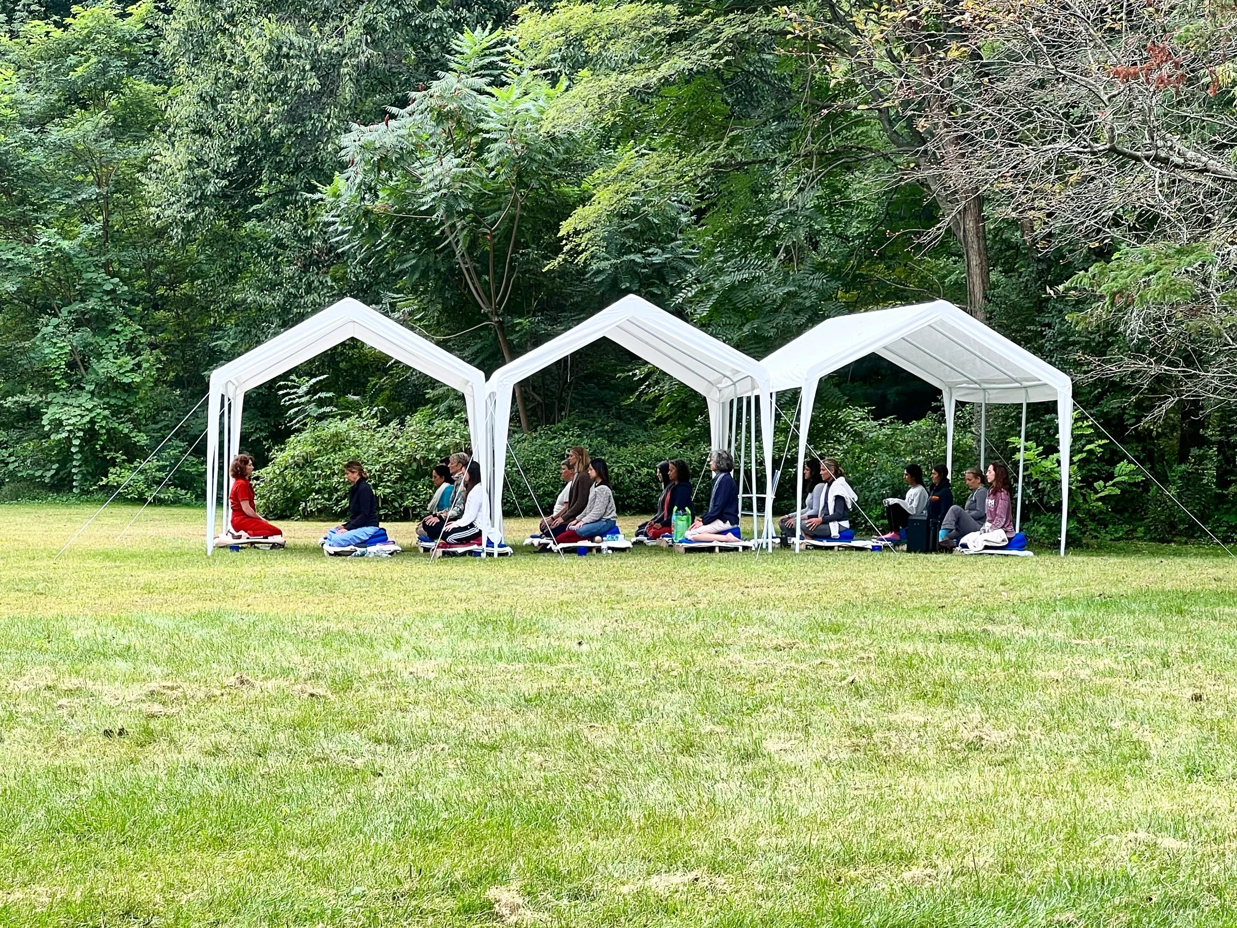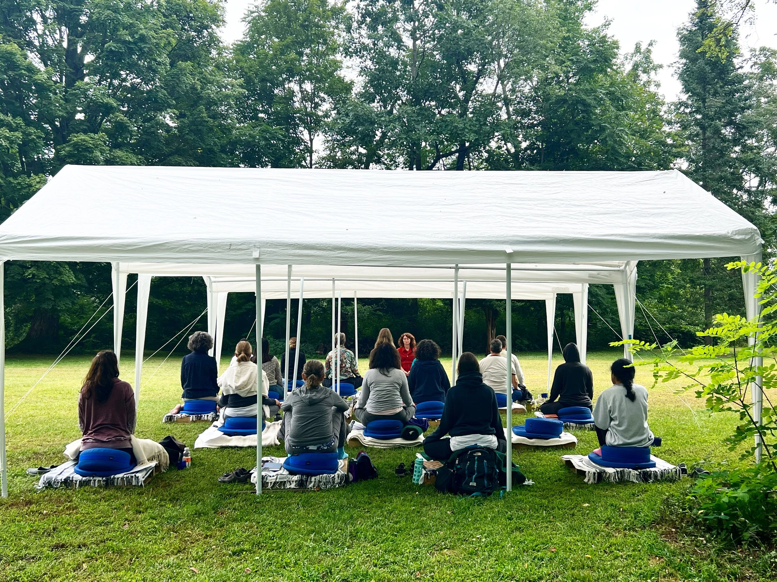 We’ll be gathering for practice periods outdoors and under a large, open tent — with our own, individual meditation platforms, so that we’re able to maintain our personal space in an airy setting. Meals will be served outdoors on the deck with shared table seating, weather permitting. Meditation sessions will be a blend of sitting and walking meditation, with dharma talks and group discussion sprinkled in.